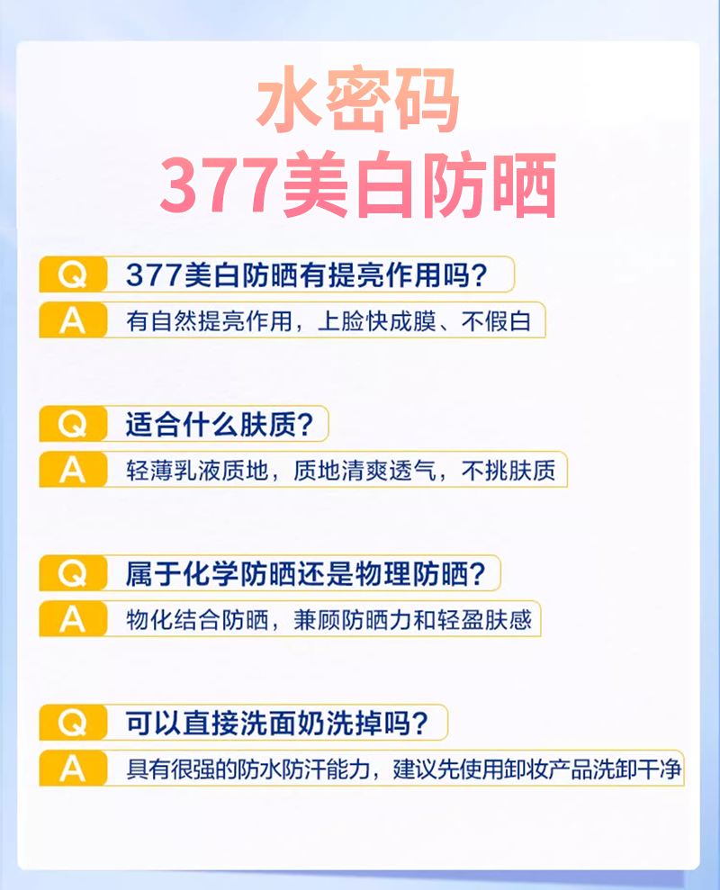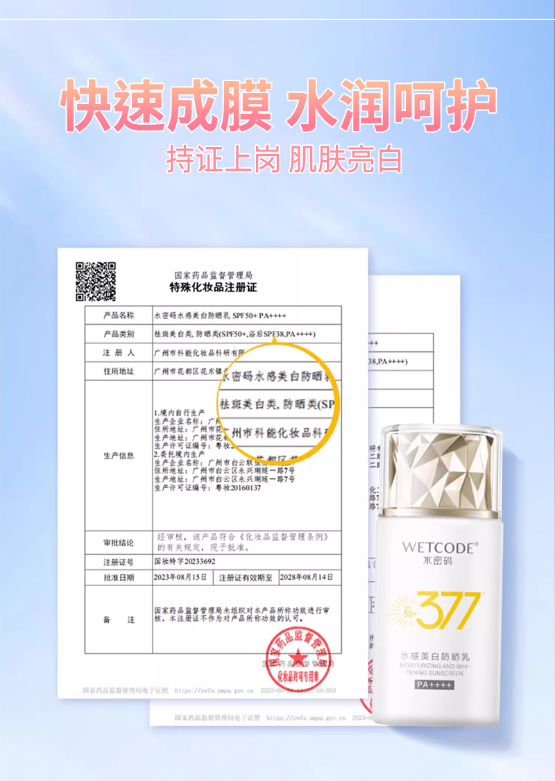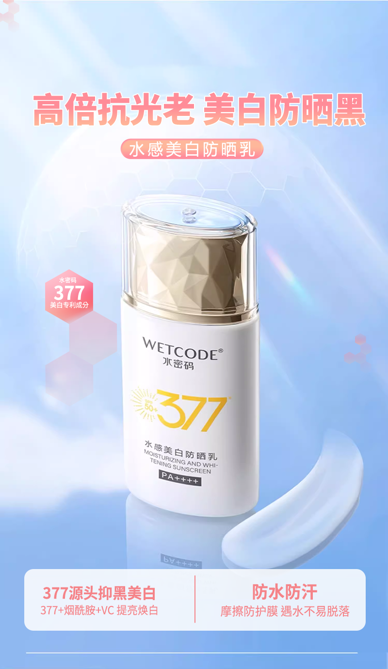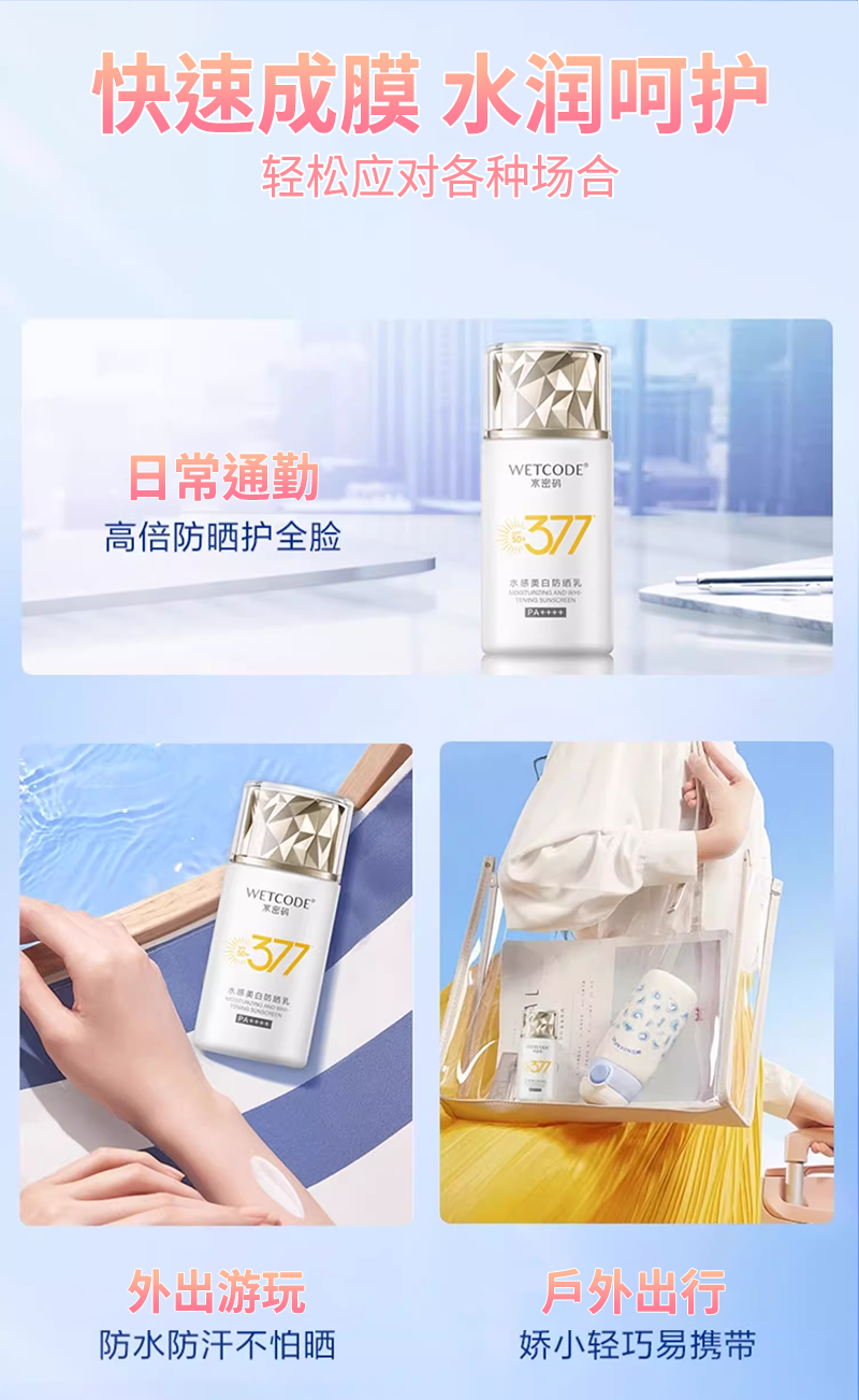 水密码377 防晒乳|美白防黑 源头抑黑 焕白淡斑 不闷不黏|官方正品保障 SPF50+