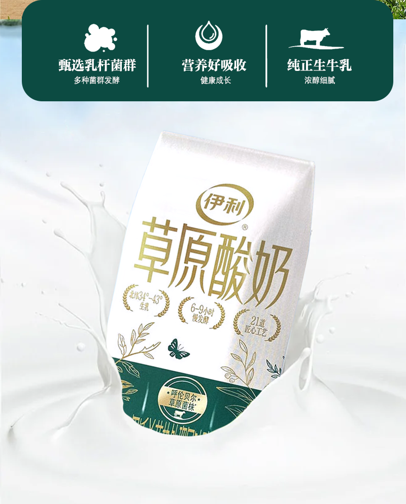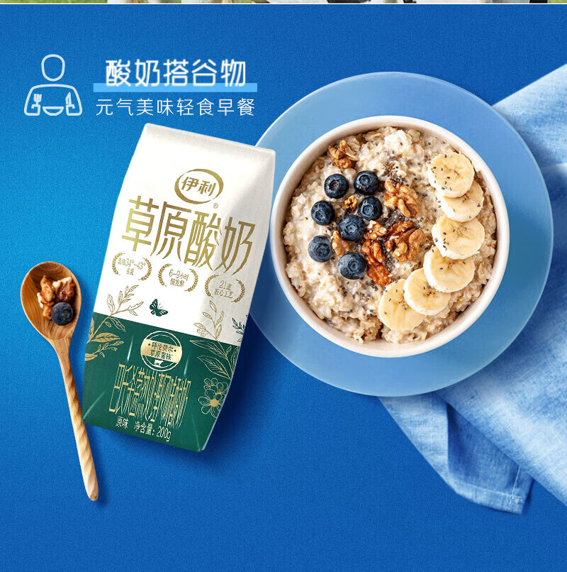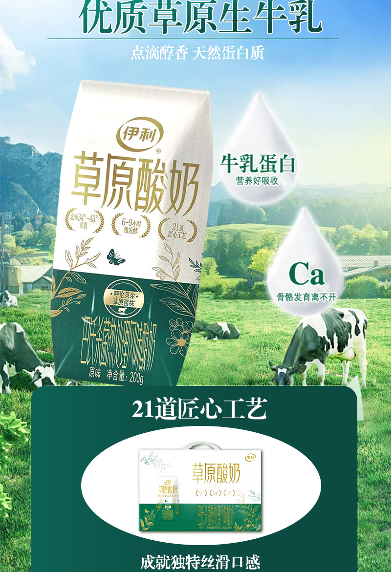 伊利草原酸奶|奶香浓郁 点滴醇香 营养补钙10防腐 0香精 0添加 200克x10盒/箱